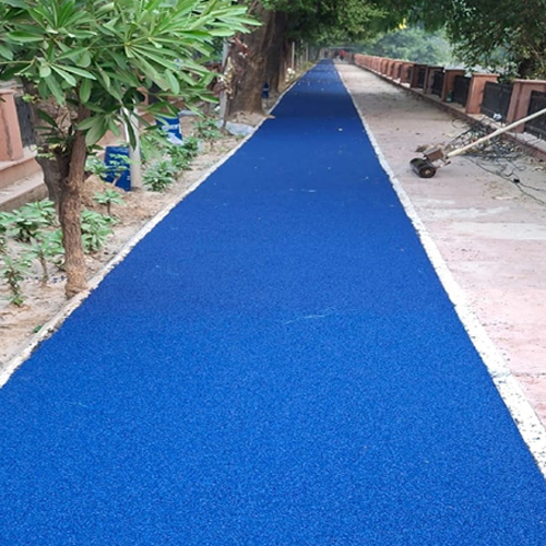 | Material | Wear layer consisting of solid-colored EPDM granules mixed with a PU bonding agent; base layer consisting of SBR granules mixed with a PU bonding agent. |