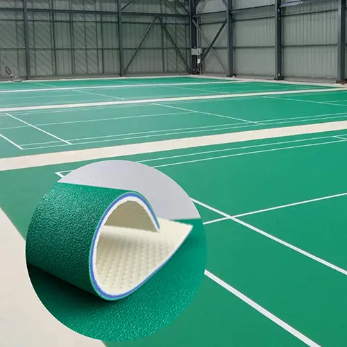 PVC Sports Flooring is a classic and specially designed solution for indoor badminton and basketball courts. The sand surface pattern is professionally engineered for excellent wear resistance and anti-slip performance.
